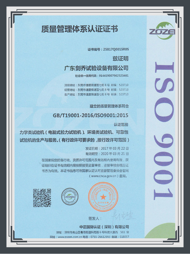 廣東劍喬試驗設備有限公司 (品牌名:劍喬儀器) 是專業(yè)從事振動及環(huán)境試驗設備研發(fā)、生產、銷售的大型生產廠家,生產總部設在東莞市塘廈鎮(zhèn),研發(fā)生產基地達10000㎡,并在蘇州吳中設有2000㎡的分工廠,主營恒溫恒濕試驗箱、可程式恒溫恒濕機、冷熱沖擊試驗箱、高低溫試驗箱、三綜合試驗箱、電動振動臺、振動試驗機等產品。公司擁有先進的技術研發(fā)團隊、專業(yè)的生產銷售團隊及完善的全國售后服務,高級技術人才數十名,并在全國聘請數位高級研發(fā)工程師,銷售工程師,形成了具有創(chuàng)新思維的梯隊人才結構,營銷網絡覆蓋了全國絕大多數大、中型城市。劍喬近20年來已為數十家百強企業(yè)11289+家終端客戶提供優(yōu)質的...【詳細】
